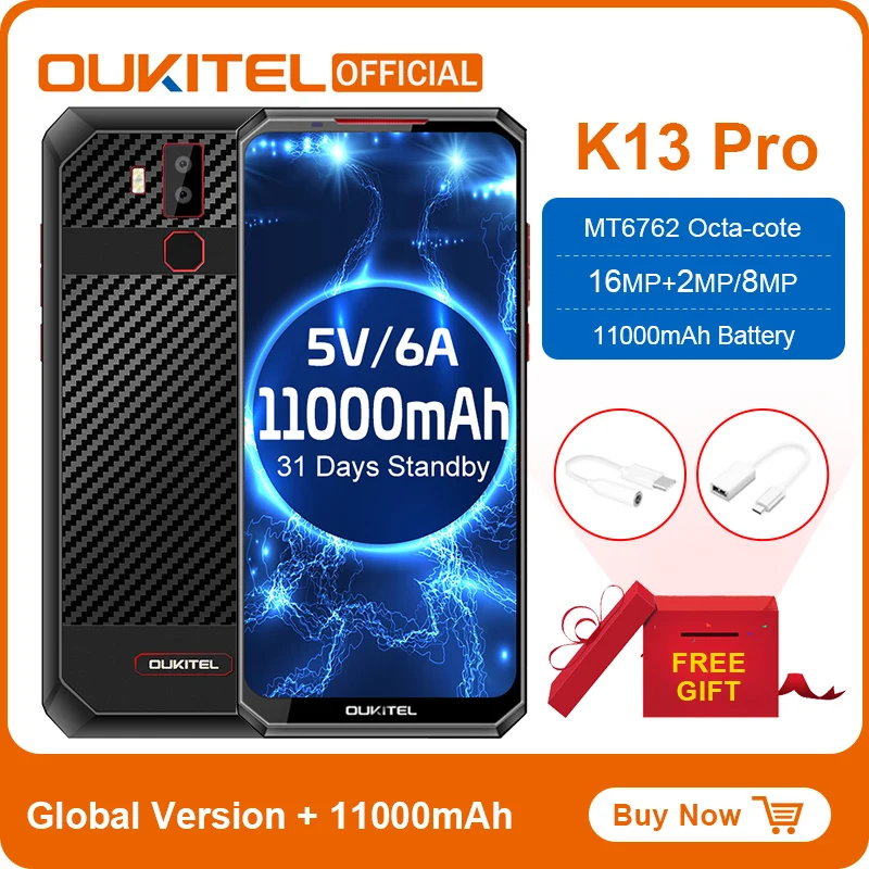 Check out our sale items OUKITEL K13 Pro Android 9.0 Mobile Phone 6.41" 19.5:9 Screen MT6762 4G RAM 64G ROM 5V/6A 11000mAh O and enjoy clear tolerable Shipping on