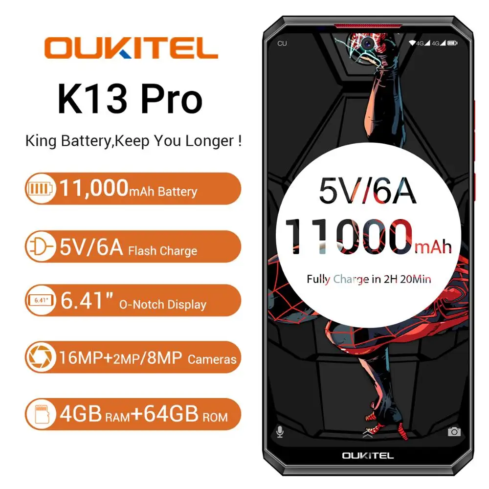 Shop our OUKITEL K13 Pro Android 9.0 Mobile Phone 6.41" 19.5:9 Screen MT6762 4G RAM 64G ROM 5V/6A 11000mAh O with price US $333.32 , And get 43%OFF